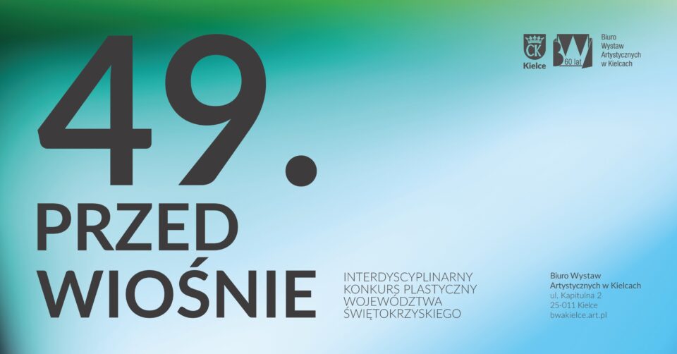 Już po raz 49 Biuro Wystaw Artystycznych w Kielcach zaprasza wszystkie upoważnione regulaminem osoby artystyczne do wzięcia udziału w kolejnej edycji dorocznego konkursu i wystawie pokonkursowej PRZEDWIOŚNIE.